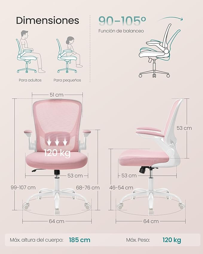 Aunque el color llame la atención, lo más importante es que una silla ergonómica cuida tu postura. Una buena silla rosa no solo combina con tu habitación: también te ofrece soporte lumbar, altura regulable, asiento cómodo y respaldo adaptable. Si pasas muchas horas frente al ordenador, esto marca la diferencia entre terminar el día sin molestias o con la espalda hecha un desastre.