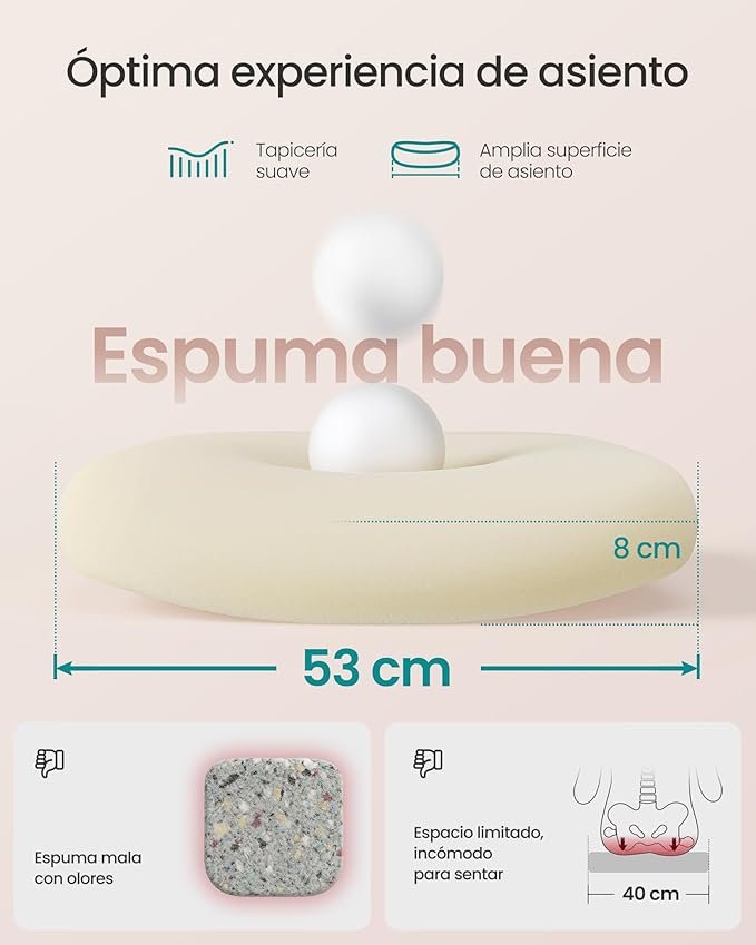 Asegúrate de que la base sea metálica o robusta, y que las ruedas sean silenciosas. Las sillas rosas de gama baja a veces sacrifican calidad en esta parte.